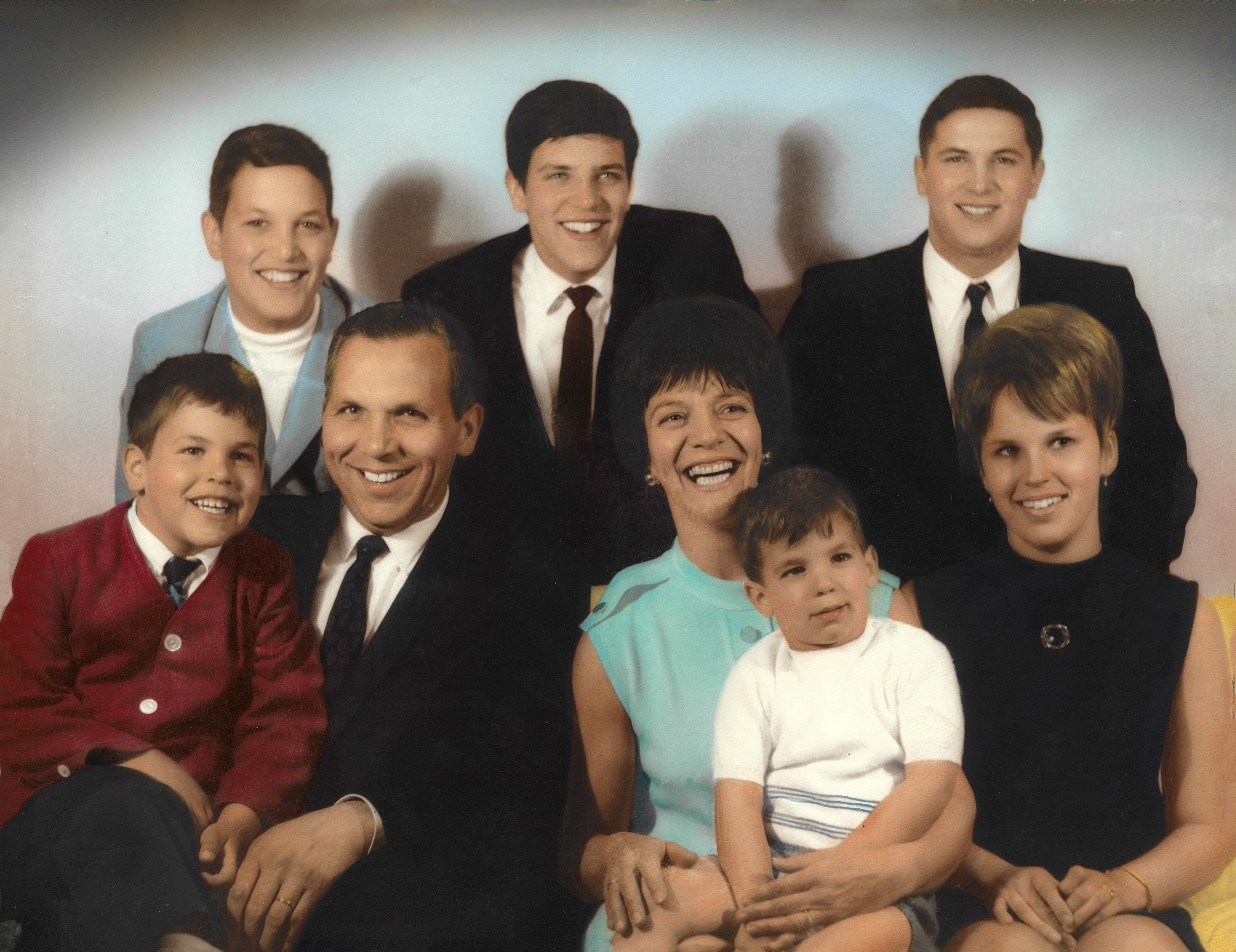 Back row: Bill, Roy, Len Front row: Frank Jr., Frank Sr., Nina, Jon, Donna